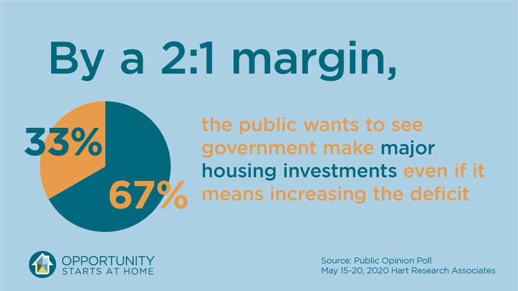 The vast majority of the public, on a bipartisan basis, sees housing assistance to prevent evictions and homelessness during the pandemic as urgent a priority as investments in healthcare. In fact, there is near-universal public support for concrete solutions like providing emergency rental assistance, expanding homeless assistance funding, and enacting a nationwide eviction moratorium during the COVID-19 outbreak, all of which are already included in the HEROES Act.