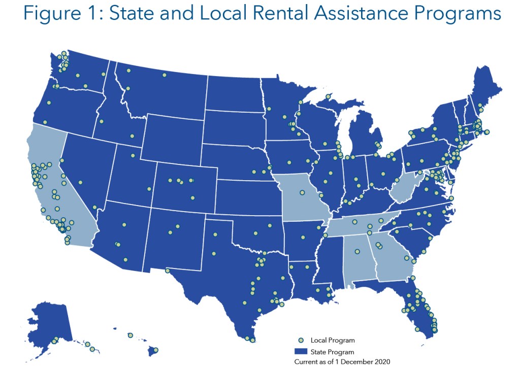 Congress is currently negotiating a bipartisan COVID-19 relief package that includes $25 billion in rent relief through the U.S. Treasury Department, funding critical to state and local emergency rental assistance programs, and a one-month extension of the federal eviction moratorium. Federal resources have played a significant role in state and local governments’ ability to respond to the eviction crisis threatening millions of renters during the COVID-19 pandemic. NLIHC identified more than 500 state and local emergency rental assistance programs created or expanded since March 2020. Of those programs that we know their funding sources, more than 70% were fully funded by the CARES Act, enacted by Congress at the end of March. While some programs struggled to overcome administrative hurdles, many programs successfully distributed their available funds in a timely manner. They all face unprecedented demand for assistance and are in need of additional resources and time to distribute the assistance, which the Emergency Coronavirus Relief Act as part of the bipartisan COVID-19 relief package provides.